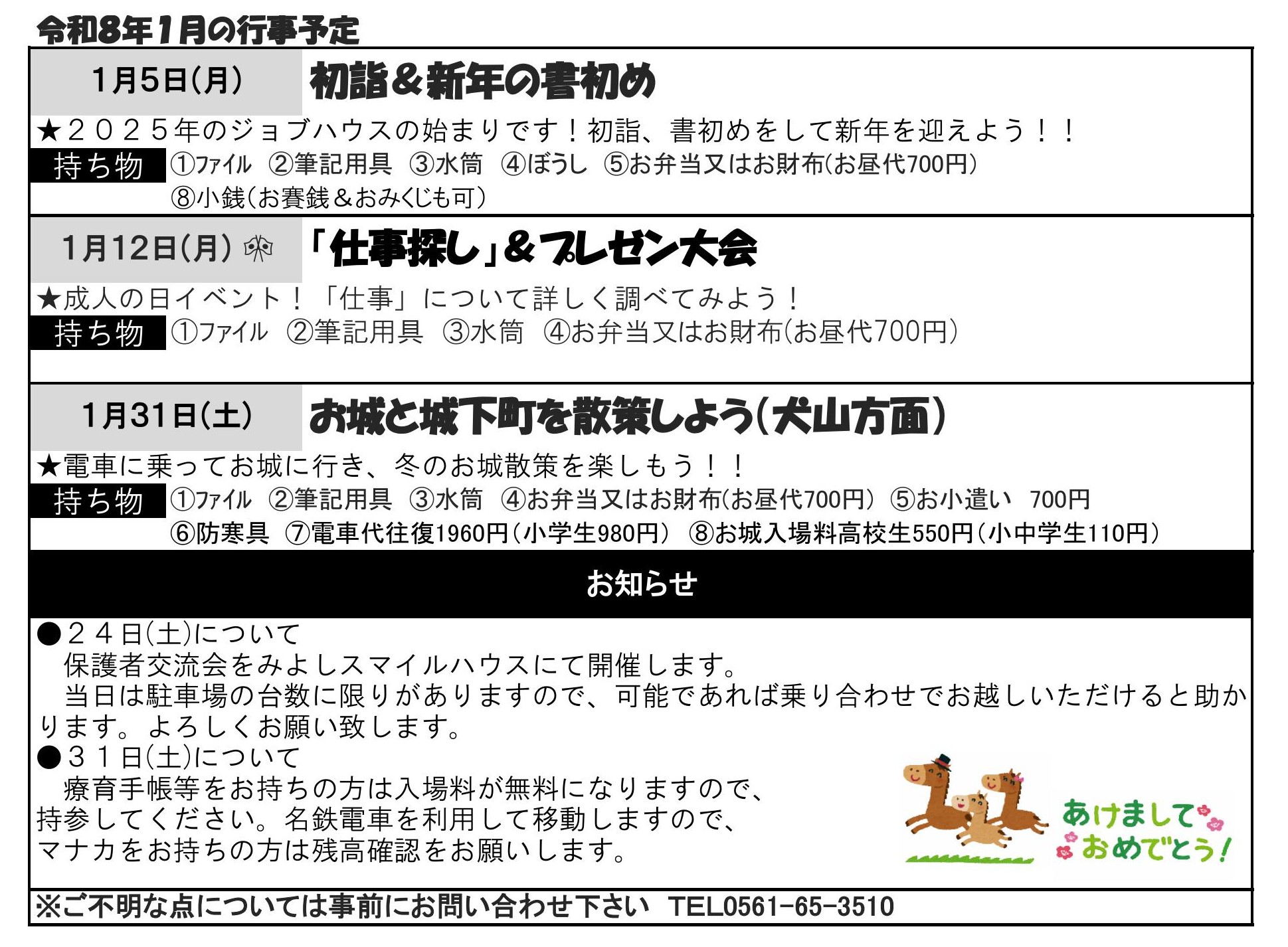 > お知らせ > 令和8年1月の予定(ジョブハウス)